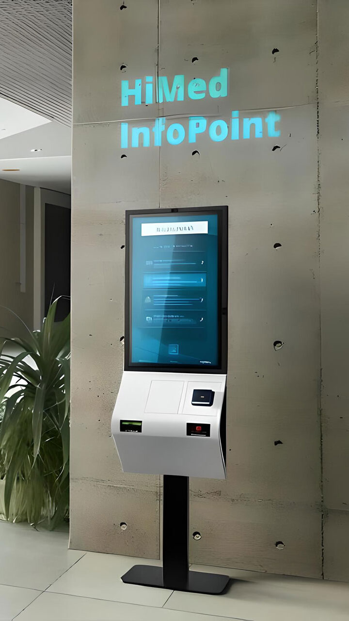 Ab 2024 kommt ein Teil der Angebote über das Kiosksystem HiMed InfoPoint zum Patienten. Die Hardware der Lösung stammt von Pyramid. Das Terminal basiert auf dem POLYTOUCH® PASSPORT 32, der für die spezifischen Anforderungen von Siemens HiMed ausgerüstet wurde.